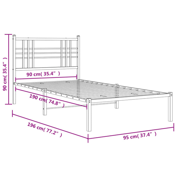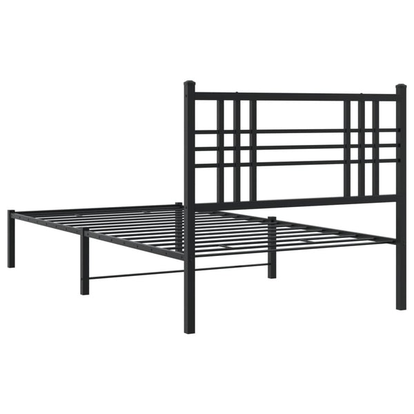 Musta metallinen sängynrunko päädyllä 90x190cm