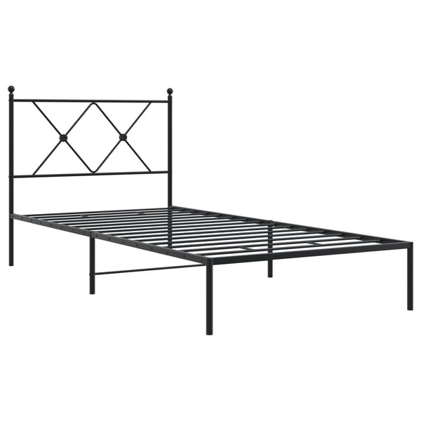 Musta metallinen sängynrunko päädyllä 90x200cm