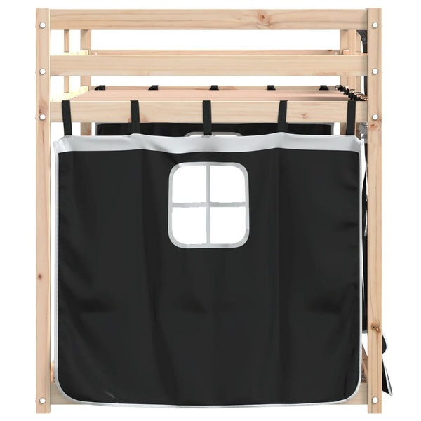 Mustavalkoinen parvisänky verhoilla 75x190cm mänty