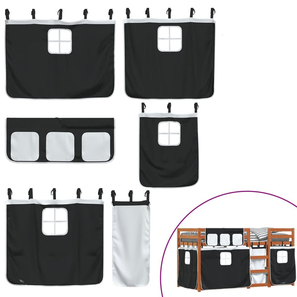 Mustavalkoinen parvisänky verhoilla 90x190cm mänty