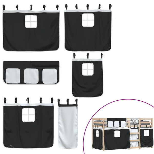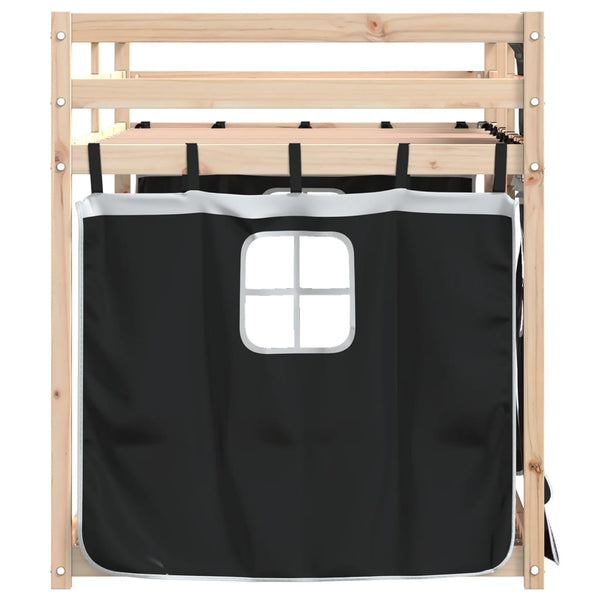 Mustavalkoinen parvisänky verhoilla 90x200cm mänty