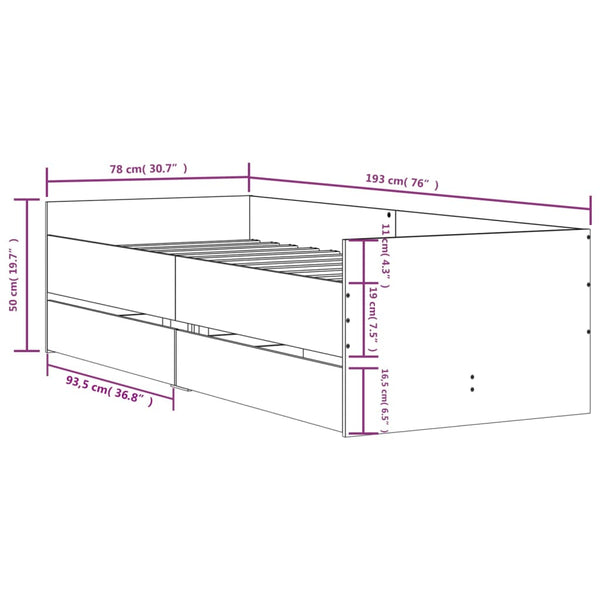 Musta sängynrunko laatikoilla 75x190cm small single