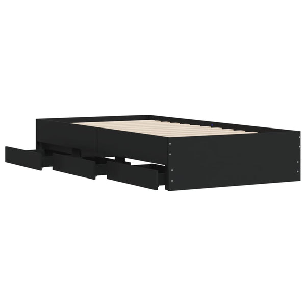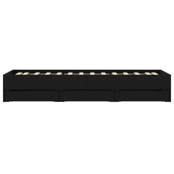 Musta sängynrunko laatikoilla 90x190cm puinen