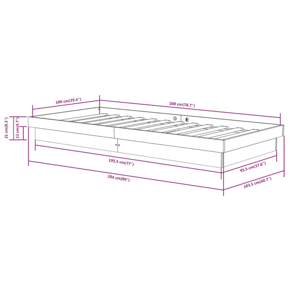- Tämä sängynrunko sopii patjalle, jonka mitat ovat 100 x 200 cm.