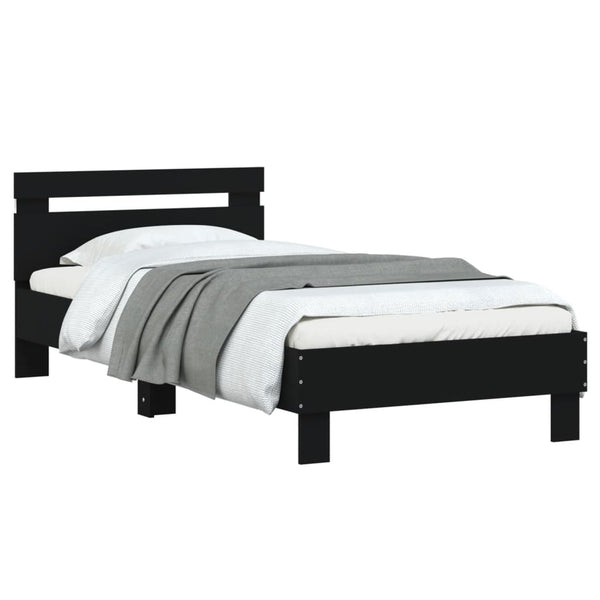 Musta sängynrunko päädyllä ja led-valoilla 75x190cm