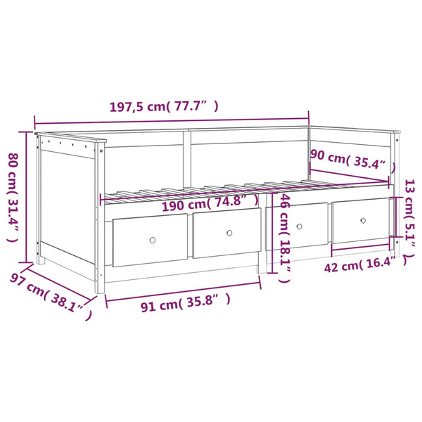 Musta sohvasänky 90x190cm mänty