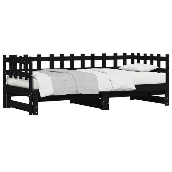 Musta sohvasänky ulosvedettävä 90x190cm 2x, mänty
