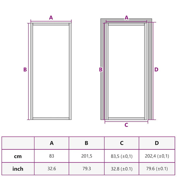 - Tämä sisäovi tulee asentaa 35 - 50 mm ovenkarmiin.