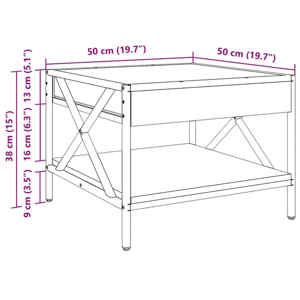 Musta sohvapöytä infinity led-valoilla 50x50x38cm