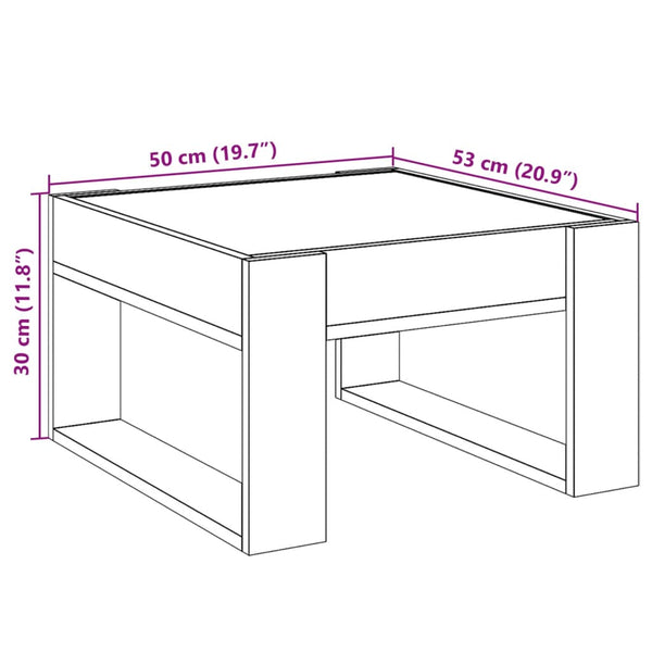 Musta sohvapöytä infinity led-valoilla 50x53x30cm