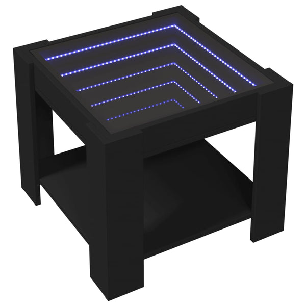 Musta sohvapöytä led-valoilla 53x53x45cm puinen