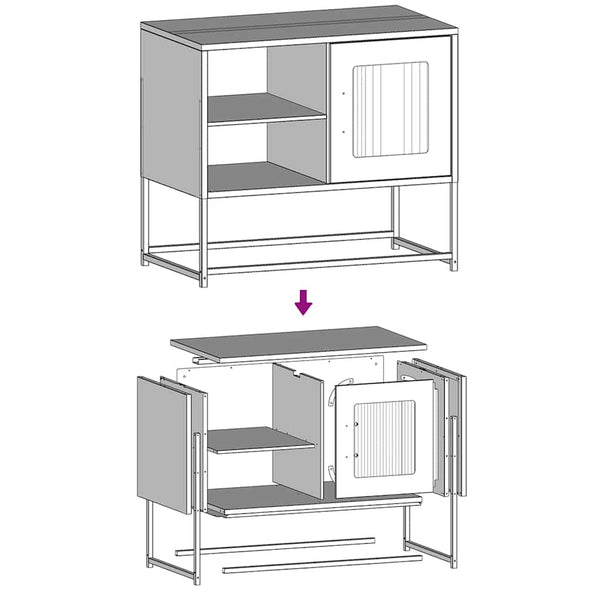 - Metallikahvat: Tämä mediakaappi on varustettu metallikahvoilla, jotka helpottavat pääsyä ja antavat sille tyylikkään teollisen tyylin.