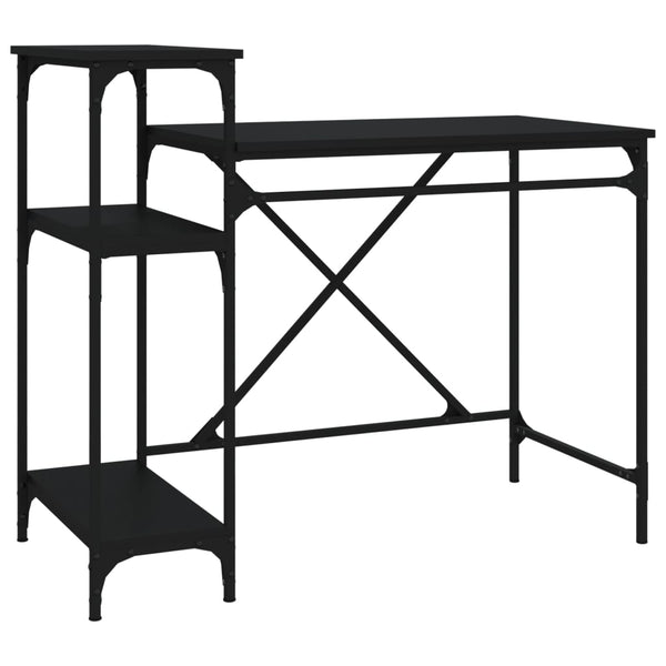 Musta työpöytä hyllyillä 105x50x90cm puinen ja rauta