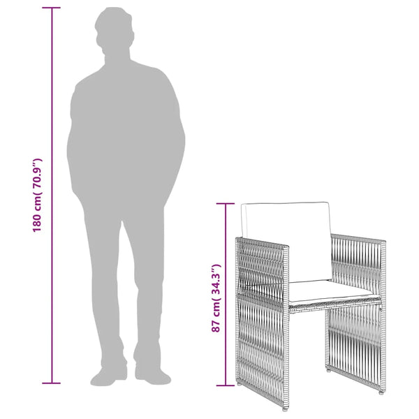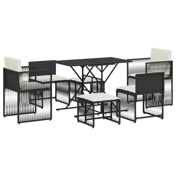 Musta ulkoruokailuryhmä 7-osainen tyynyillä polyrottinki