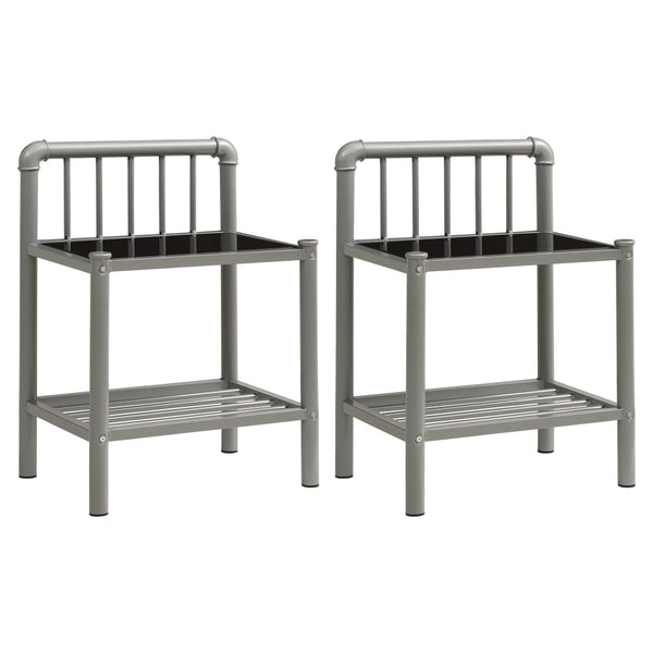 Harmaa ja musta yöpöydät 2 kpl metalli ja lasi