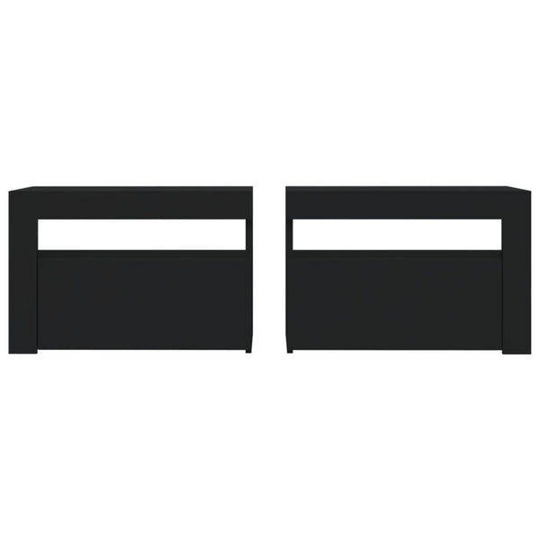Musta yöpöydät 60x35x40cm 2 kpl led-valoilla