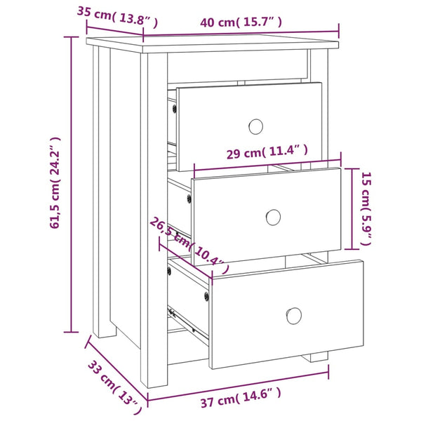 Musta yöpöydät 40x35x61,5cm 2 kpl mänty