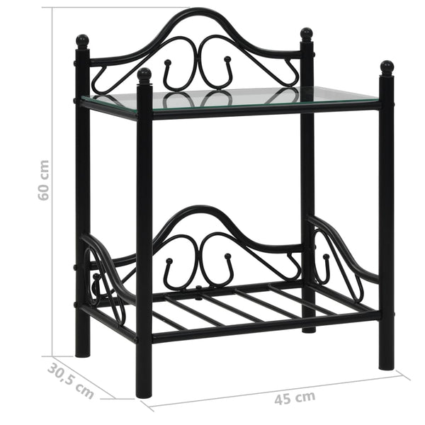 Tämä yöpöytäsarja koostuu tukevista teräsrungoista ja karkaistusta lasista valmistetuista lasipaneeleista, sarja on vakaa ja kestävä. Kussakin yöpöydässä on 2 hyllyä, joille on kätevä asettaa pieniä esineitä. Kaareva teräsmuotoilu antaa oman lisänsä yöpöytien elegantille tyylille. Sarja on helppo koota. Toimitus sisältää 2 yöpöytää.