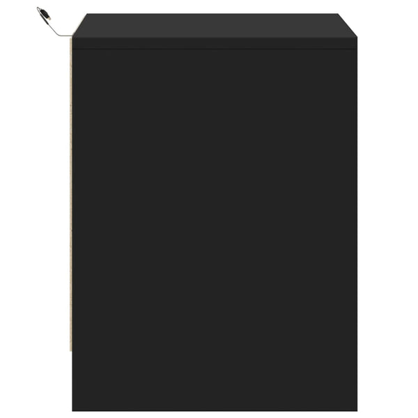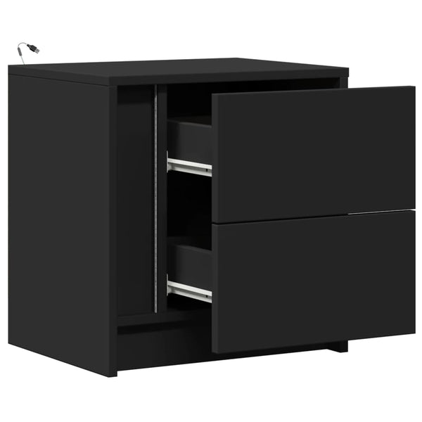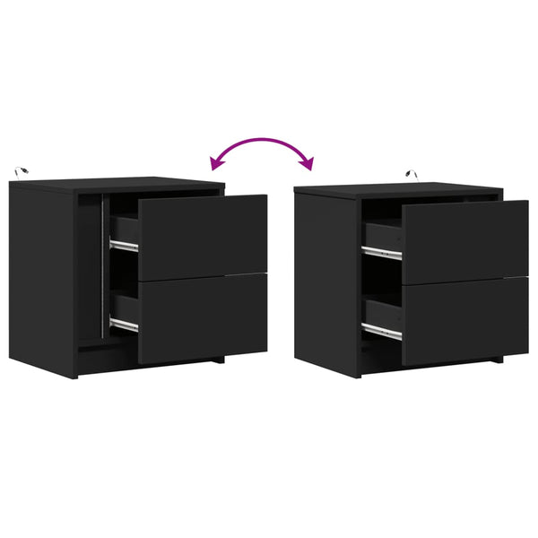 Musta yöpöytä led-valoilla 2 kpl puinen