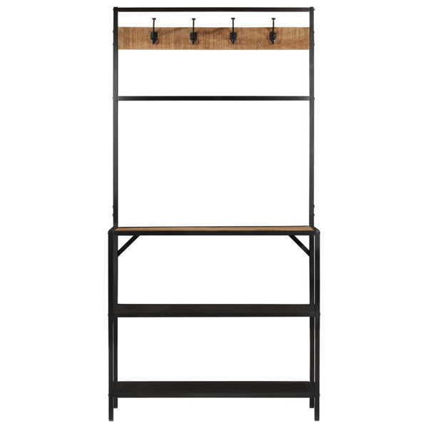- 2-in-1 naulakko: Tässä naulakossa on neljä koukkua, jotka tarjoavat runsaasti ripustustilaa takeille, laukuille, hatuille, huiveille ja muille tavaroille. Siinä on lisäksi kolme hyllyä kenkien, säilytyslaatikoiden, käsilaukkujen ja muiden tavaroiden säilytykseen.