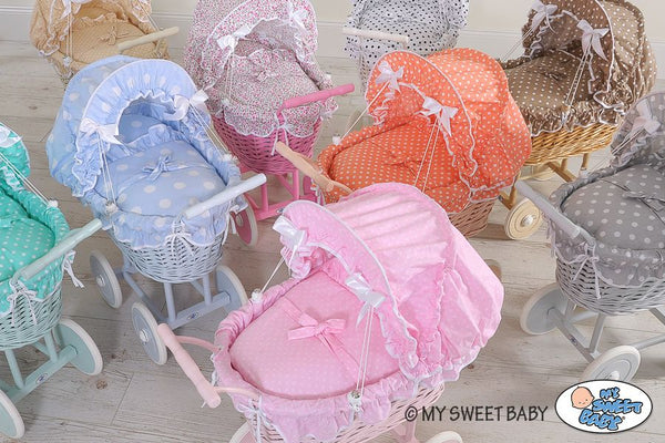 Viehättävä ja tyylikäs wicker-nukkekärry on täydellinen lahja pienelle tytölle. Tämä kaunis nukkekärry MY SWEET BABY on valmistettu luonnonmukaisesta puuvillasta ja siinä on ainutlaatuinen käsintehty viimeistely. Laadukas ja kestävä rakenne takaa pitkäaikaisen ilon.