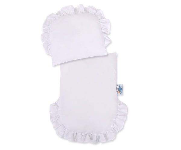 Vaunun mukana tulee myös upea vuodevaatesetti nukelle. Tyyny ja peitto, joissa on hienostunut röyhelöreunus, luovat nukelle mukavan ja tyylikkään nukkumispaikan. Vaunu on lisäksi vuorattu pehmeällä pehmusteella, joka tarjoaa ylimääräistä mukavuutta.