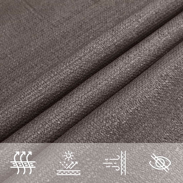 Aurinkopurje on valmistettu 100-prosenttisesta HDPE:stä (suurtiheyspolyeteeni) ja se suojaa sinua suoralta auringonvalolta, mutta sallii ilman kiertää ja läpäisee vettä. HDPE on erityisesti käsitelty, jotta se ei homehdu ja jotta se sietää UV-säteitä. Aurinkopurje on helppo pystyttää jokaisessa kulmassa olevien ruostumattomien teräskiinnikkeiden ja mukana tulevien köysien ansiosta.