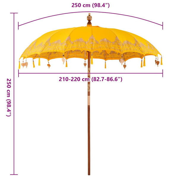 - Tyylikkäät Balilaiset Yksityiskohdat: Balilaisen kulttuurin inspiroimana, tämä aurinkovarjo sisältää ainutlaatuisia käsintehtyjä yksityiskohtia, jotka lisäävät trooppista tunnelmaa. Kiiltävä pinta korostaa rauhoittavia maanläheisiä värejä, parantaen ulkoaluetta ja antaen ilmeen, joka on sekä klassinen että hieman eksoottinen.