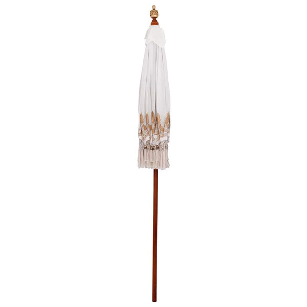 • Tyyli ja rakenne: Tää aurinkovarjo ei oo vaan käytännöllinen; se on taideteos. Balilaisen tyylinsä ja kierretyn ilmeensä avulla se heijastaa Balin rikasta kulttuuria, lisäten rauhallista tunnelmaa sun tilaan.