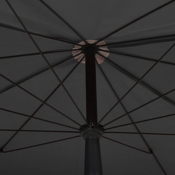UV-suojaavasta ja haalistumattomasta polyesterista valmistettu terassin aurinkovarjo tarjoaa sinulle optimaalisen suojat aurinko vastaan ja se on helppo puhdistaa. Kestävä terästanko ja 10 tukevaa kaarta tekevät aurinkovarjosta todella vakaan ja tukevan. Tämän aurinkovarjon ainutlaatuinen suunnittelu antaa sinun kallistaa aurinkovarjoa auringonsäteiden blokkaamiseksi. Kampimekanismin ansiosta tämä puutarhan aurinkovarjo on helppo avata ja sulkea.