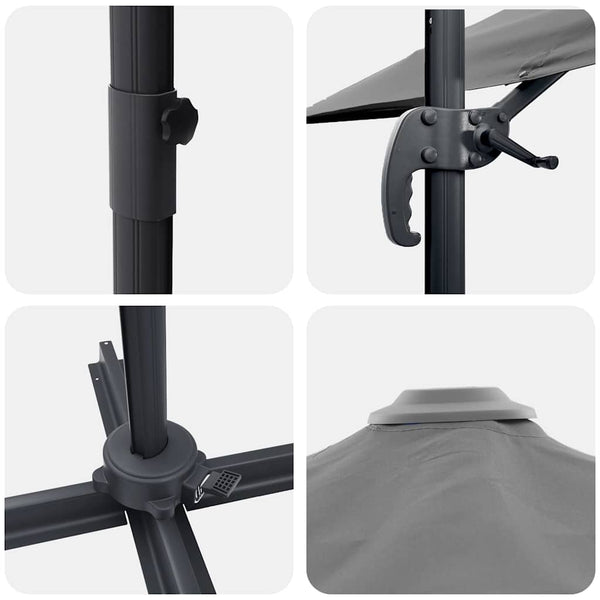 - Säädettävä muotoilu: 286 x 285 x 265 cm Cantilever Roma -parapluussa on kätevä kallistumismekanismi, joka mahdollistaa säätämisen auringon mukaan. Tämä ominaisuus tekee ulkona rentoutumisesta mukavampaa perheen ja ystävien kanssa.