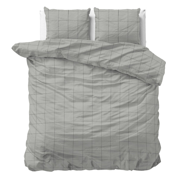 Upea Harmaa Puuvillasatiini Pussilakanasetti - Deep Check