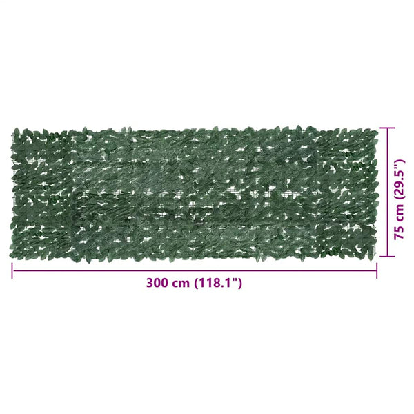 Vihreillä lehdillä varustettu aita on koristeellinen ja erinomaisen kätevä lisäys ulkotilaasi. Polyeteenistä ja kankaasta valmistettu yksityisyyssuoja on kestävä eikä vaadi paljoa huoltoa. Se suojaa vahvalta auringonvalolta ja ylläpitää yksityisyyttäsi, antaen samalla ilman kiertää.