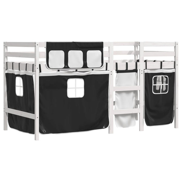 Mustavalk. lasten parvisänky verhoilla 90x190cm mänty