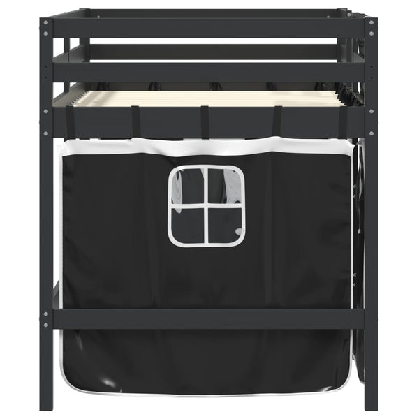 Mustavalk. lasten parvisänky verhoilla 90x190cm mänty