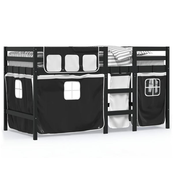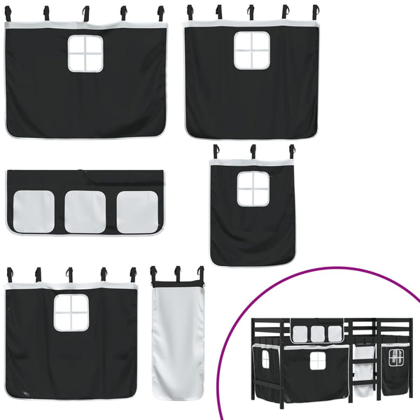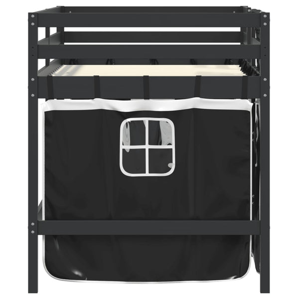 Mustavalk. lasten parvisänky verhoilla 90x200cm mänty