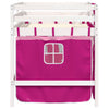 Pinkki lasten parvisänky verhoilla 90x190cm mänty