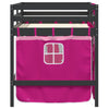 Pinkki lasten parvisänky verhoilla 90x200cm mänty