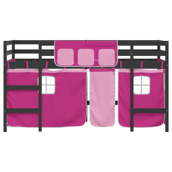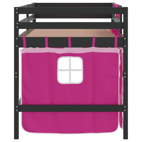 Pinkki lasten parvisänky verhoilla 90x200cm mänty