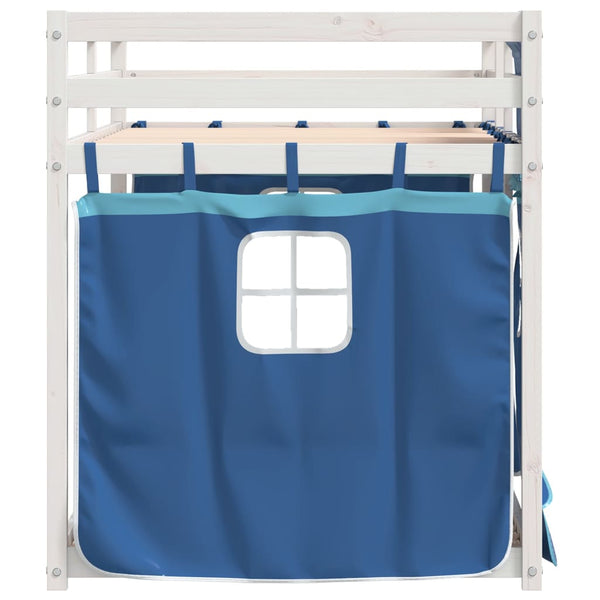 Sininen parvisänky verhoilla 80x200cm mänty