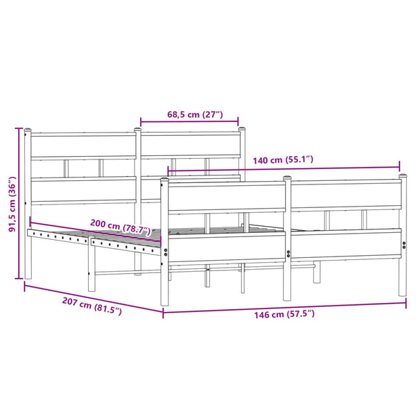 Sonoma-tammi metallinen sängynrunko ilman patjaa 140x200cm