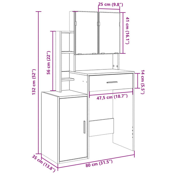 Harmaa peilipöytä kaapilla 80x35x132cm sonoma