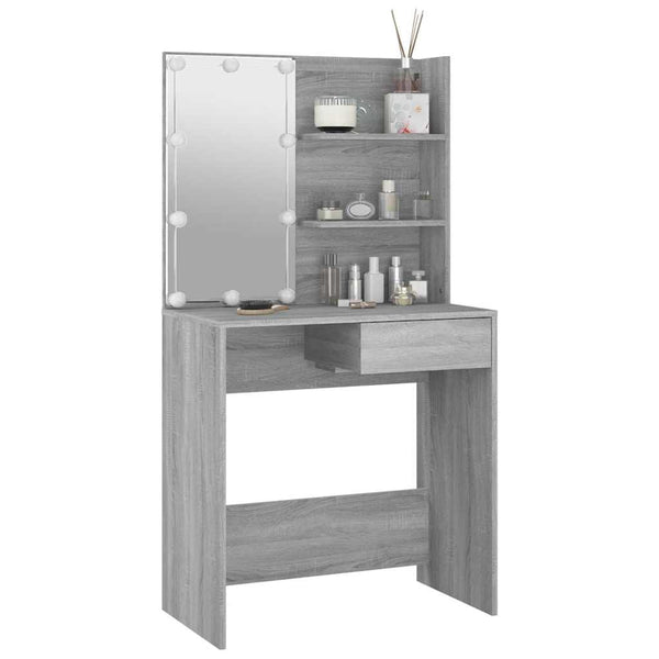 Harmaa peilipöytä led-valoilla 74,5x40x141cm sonoma