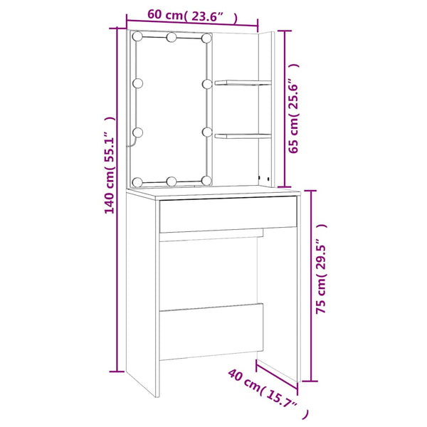 - LED-valot: Kosmetiikkapöydässä on LED-valot USB-liitännällä, jotka on helppo vaihtaa lämpimän valkoisesta kylmän valkoiseen tilaan. Peilin ympärillä olevat LED-lamput korostavat myös kauneuttasi.