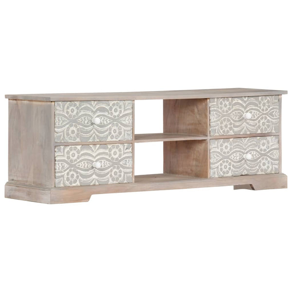 Tämä HiFi-kaappi on tehty täydestä akaasiapuusta, jossa on valkoinen viimeistely, joka antaa sille kauniin ilmeen ja kirkkaan värin. Käsityötaito ja kauniit puun pintakuviot jokaisesta huonekalusta ainutlaatuisen ja erilaisen seuraavasta. Lisäksi erinomainen käsityö takaa, että prosessin kaikki vaiheet suoritetaan erittäin huolellisesti, olipa kyse sitten kiillotuksesta, maalaamisesta tai lakkaamisesta. Vetolaatikoiden etupinnalla olevat hienot käsin veistetyt kuviot lisäävät kaapin kauneutta. Tässä tasossa on 4 vetolaatikkoa ja 2 avointa osastoa, jotka tarjoavat runsaasti tilaa multimedialaitteiden, kirjojen ja erilaisten esineiden säilyttämiseen siististi.