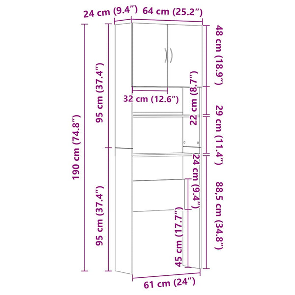 - Mitat: 64 x 24 x 190 cm (L x S x K)