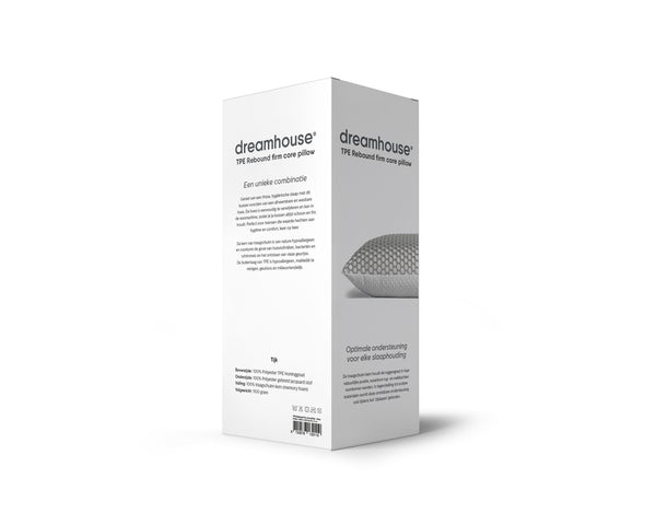 TPE Tyyny toimitetaan kompaktissa laatikossa, jossa ydin on rullattu ja päällinen taiteltu, säilyttäen materiaalin laadun kuljetuksen ajan. Paketin avaamisen jälkeen päällisen voi helposti vetää tyynyn päälle ja sulkea vetoketjulla. Tyynyn alapuoli on viimeistelty pehmeällä ja kestävällä neulotulla jacquard-kankaalla, joka lisää ylellisen tunteen.Tuotetiedot: