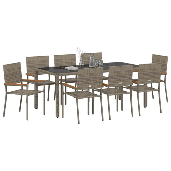 Harmaa piharuokailu setti 190x90x75cm 9 pcs polyrottinki