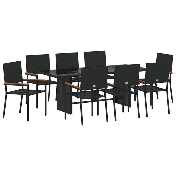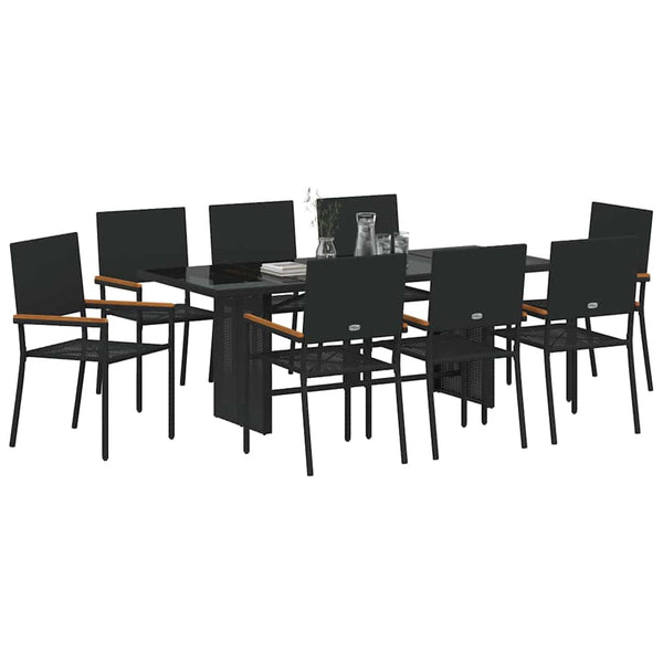 Musta piharuokailu setti 190x80x75cm 9 pcs polyrottinki