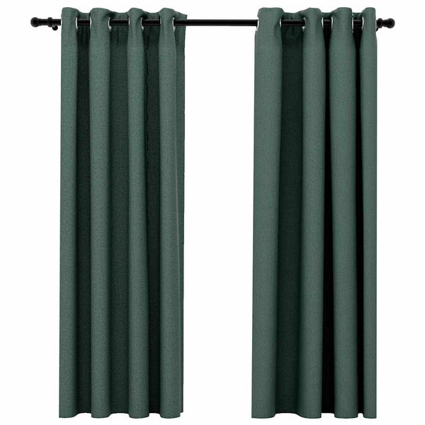 Vihreä pellavamaiset pimennysverhot renkailla 140x175cm 2 kpl